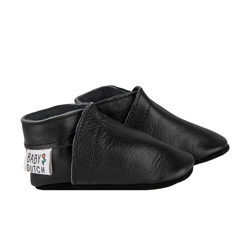 Het stoere zwarte babyschoentje is gemaakt van zacht leer. Het soepele babyslofje heeft een goede pasvorm voor het kleine baby voetje. Om te leren lopen is een babyslof het ideale 1e schoentje. Door het stevige elastiek blijft de baby slof goed zitten aan de babyvoetjes. De zwarte babyslofjes zorgen dat je kleintje goed kan bewegen en de eerste stapjes kan zetten.