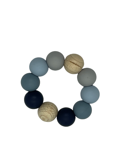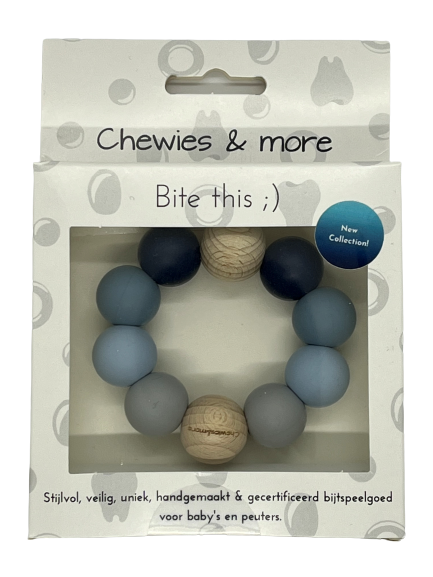 De Basic Chewie is een goede basis voor de kleintjes. Ze zijn makkelijk vast te houden door het ronde formaat. De contrasten en structuren van de kralen maken het nog interessanter voor de baby. Deze Chewie masseert het gevoelige tandvlees en verzacht de pijn van de doorkomende tandjes door het gebruik van veerkrachtig silicone en onbehandelde organische beukenhouten kralen.