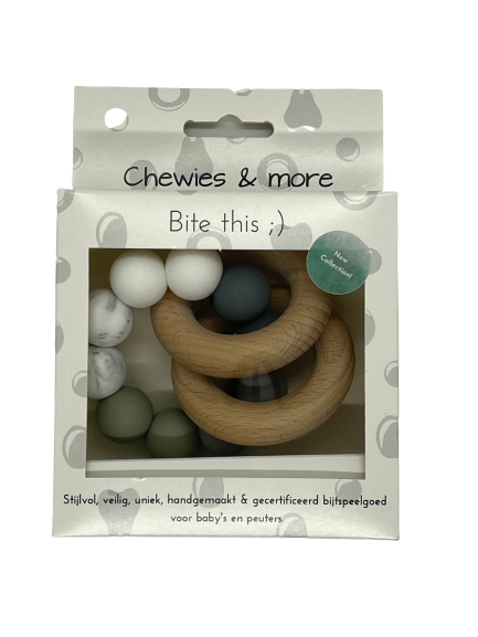 Het schoonmaken van het silicone kan met water en een mild sopje. Het beukenhout kan je afnemen met een vochtig doekje en aan de lucht laten drogen. Ook een billendoekje werkt hier goed voor! Een Chewie kan niet uitgekookt worden, in de sterilisator of in de vaatwasser.