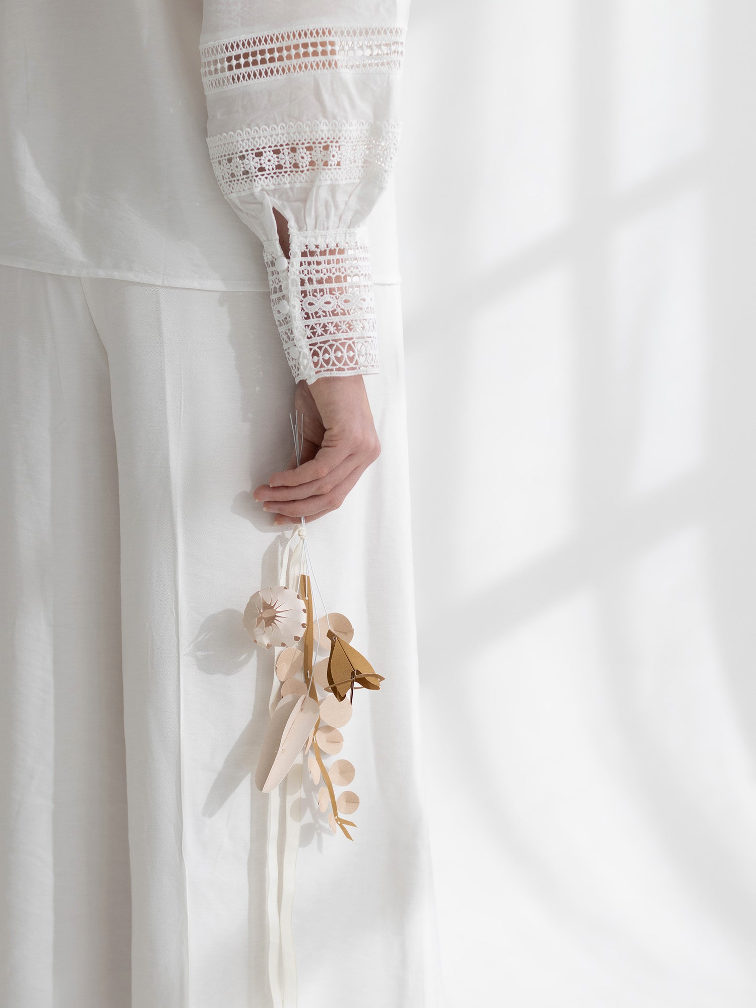 Knip het bloemdraad op de door jouw gewenste lengte, rijg het door de voorgestanste sleufjes en stel je boeketje zelf samen. Ook los – als enkele bloem in een vaasje - zijn de bloemen een subtiele blikvanger in je woonkamer.