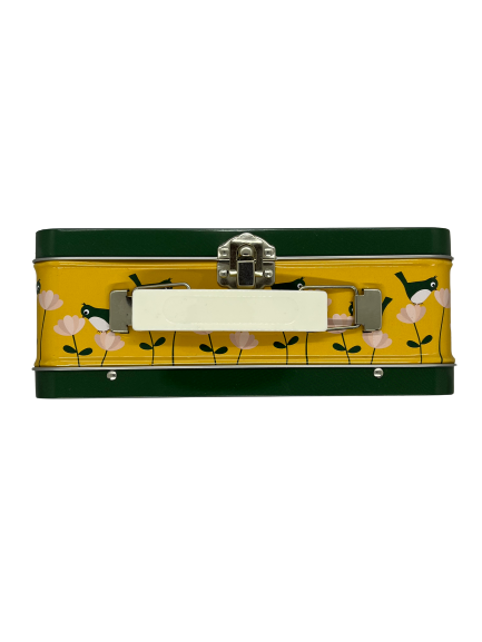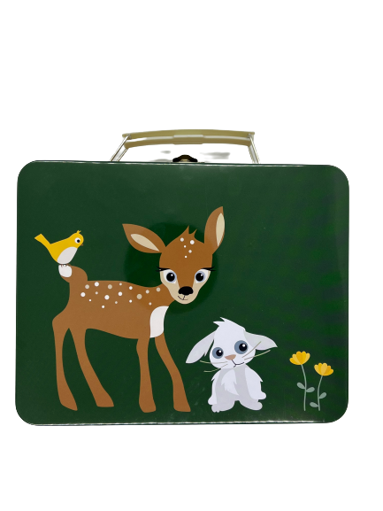 Blafre Metalen Lunchbox dieren groen. Wees het coolste kind van de school met deze metalen lunchbox in retrostijl! Deze stabiele metalen koffer is geschikt voor zowel voedsel als klein speelgoed en kan gemakkelijk worden vervoerd met zijn plastic handvat en is voorzien van een veilige vergrendeling die gemakkelijk te openen is. Met de hand reinigen met een vochtige doek en daarna droogwrijven. Afmeting: L19.5 cm x B17 cm x H8 cm.