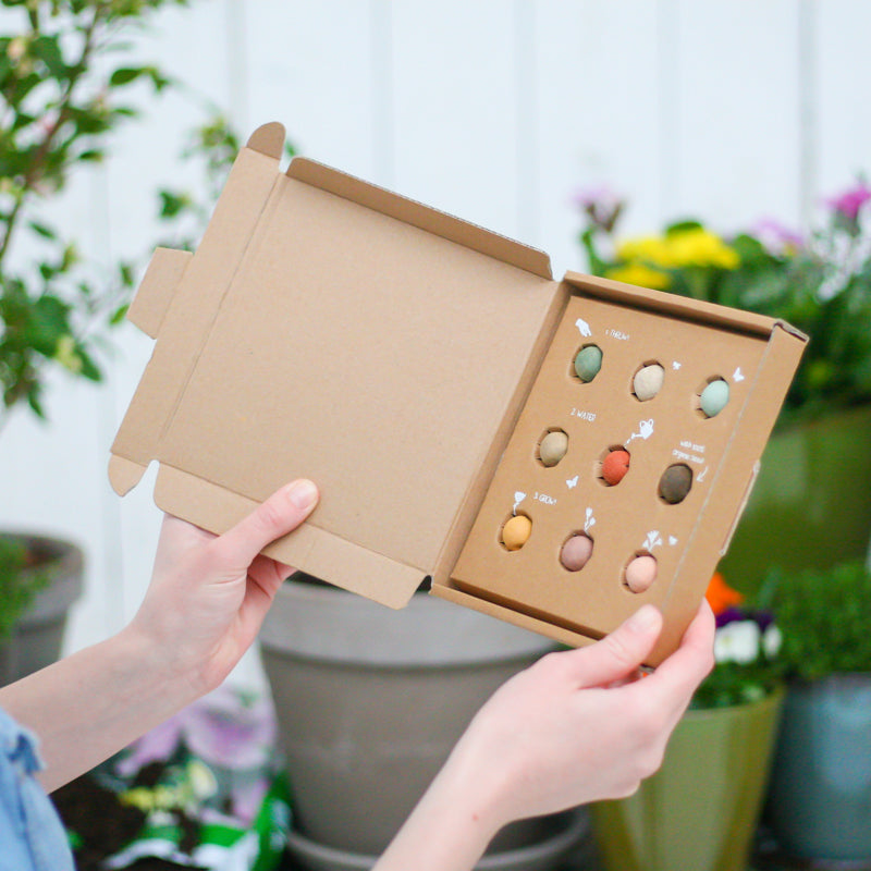 In het stijlvolle doosje vind je 9 zaaibommetjes, gevuld met biologische wilde bloemzaadjes. Kleurrijke bloemen zijn enorm belangrijk voor de aarde. Hoe meer bloemen, hoe meer voedsel voor de bijen, vlinders en hommels. Let’s spread some colour!