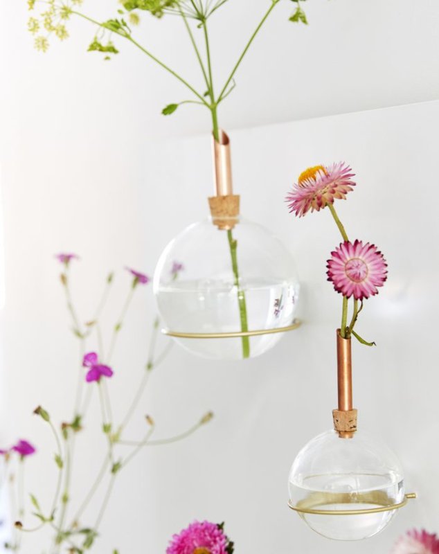 Mooie messing ring waarmee de glazen vazen van Scandinaviaform (middel formaat d85) aan de muur kunnen worden gehangen. Creëer een stoere collage aan de muur met deze handige ringen in combinatie met de glasilium vazen van Scandinaviaform.