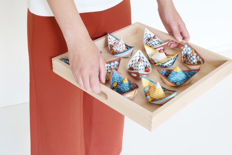 Deze zelf te vouwen bootjes zijn multi-inzetbaar: als huwelijksbootje, geboortebootje, verjaardags-schip of traktatieschuitje. En aan een touwtje geregen wordt dit kleine vlootje een hele vrolijke slinger voor in de kinderkamer!