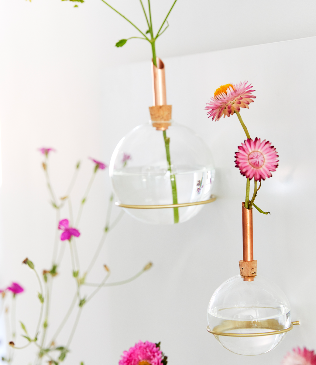 Mooie messing ring waarmee de glazen vazen ​​van Scandinaviaform (groot formaat d120) aan de muur kunnen worden gehangen. Creëer een stoere collage aan de muur met deze handige ringen in combinatie met de glasilium vazen ​​van Scandinaviaform.